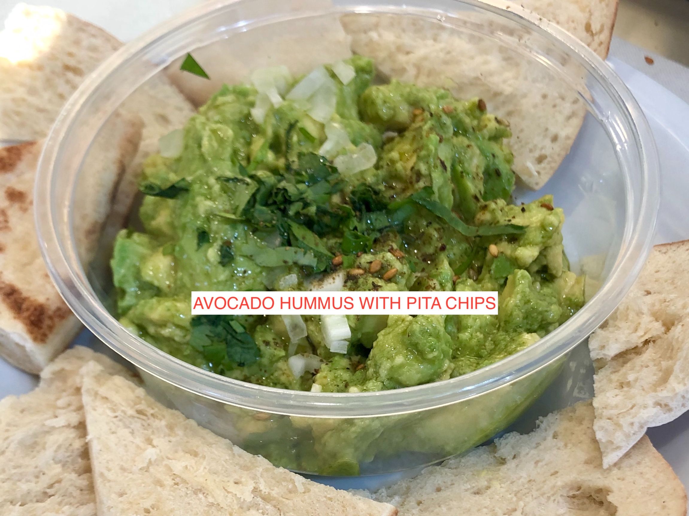 Avocado Hummus, Black Pepper, Olive Oil, Lemon Juice, Grilled Pita Bread
