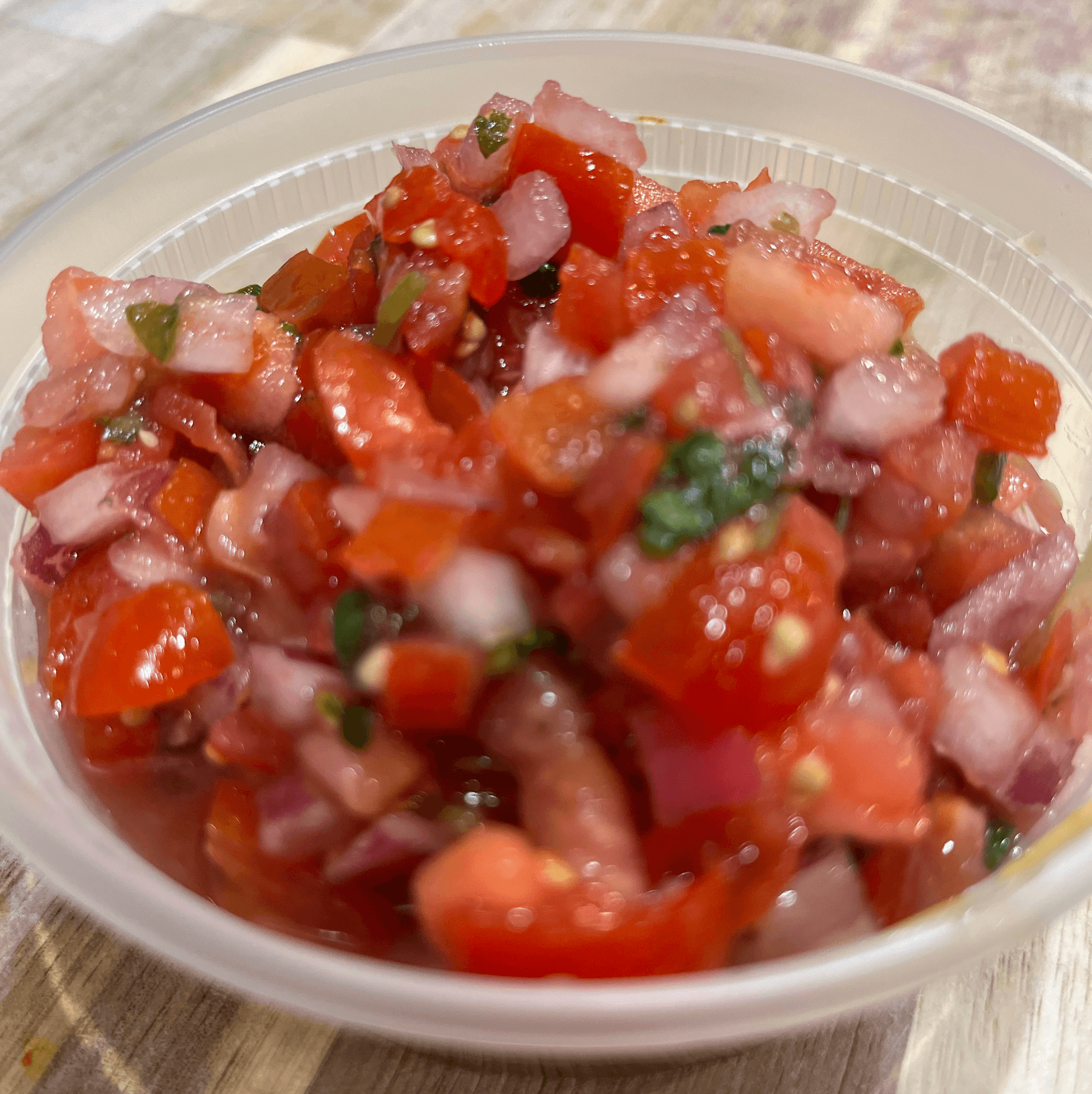 Tomatoes, Red Onions, Serrano Peppers, Cilantro, Salt