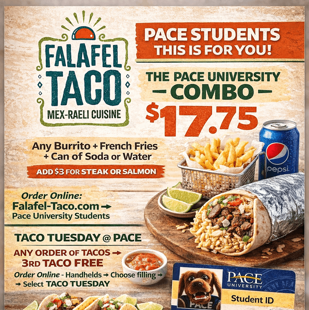 Our special PACE COMBO. Choose your Burrito, drink, and get fries included. Add $3 for steak or Salmon.